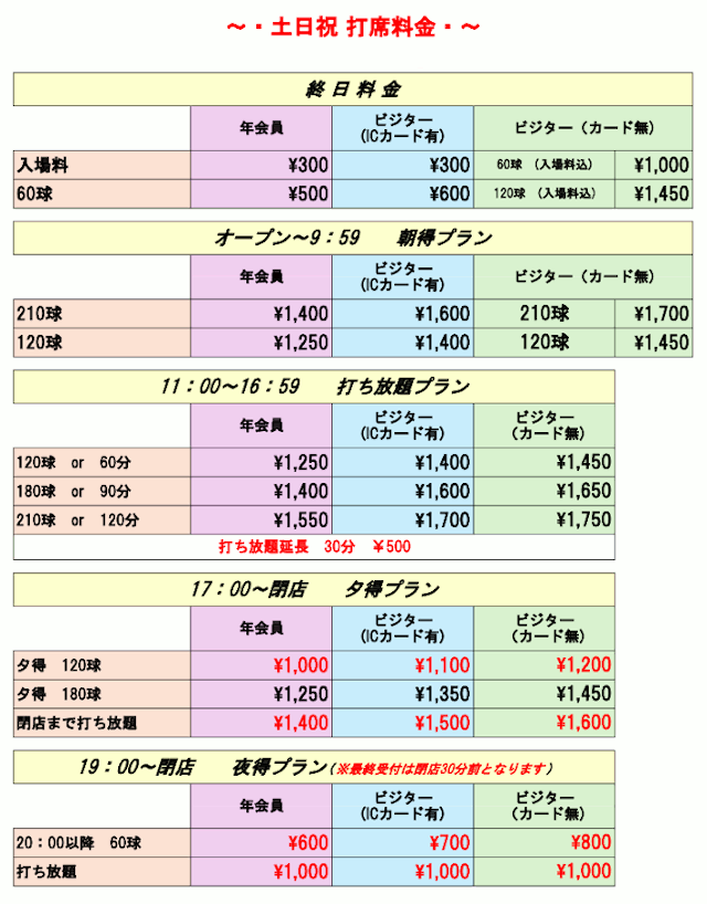 ★打席ご利用料金は、『ICカード会員料金』と『一般ビジター料金』に分類されます。